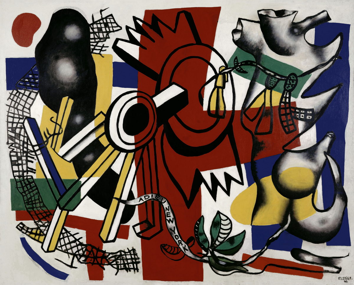 Fine art reproduction of “Adieu New York” by Fernand Léger. A vibrant Cubist work capturing the energy of New York City. Modern oil painting.