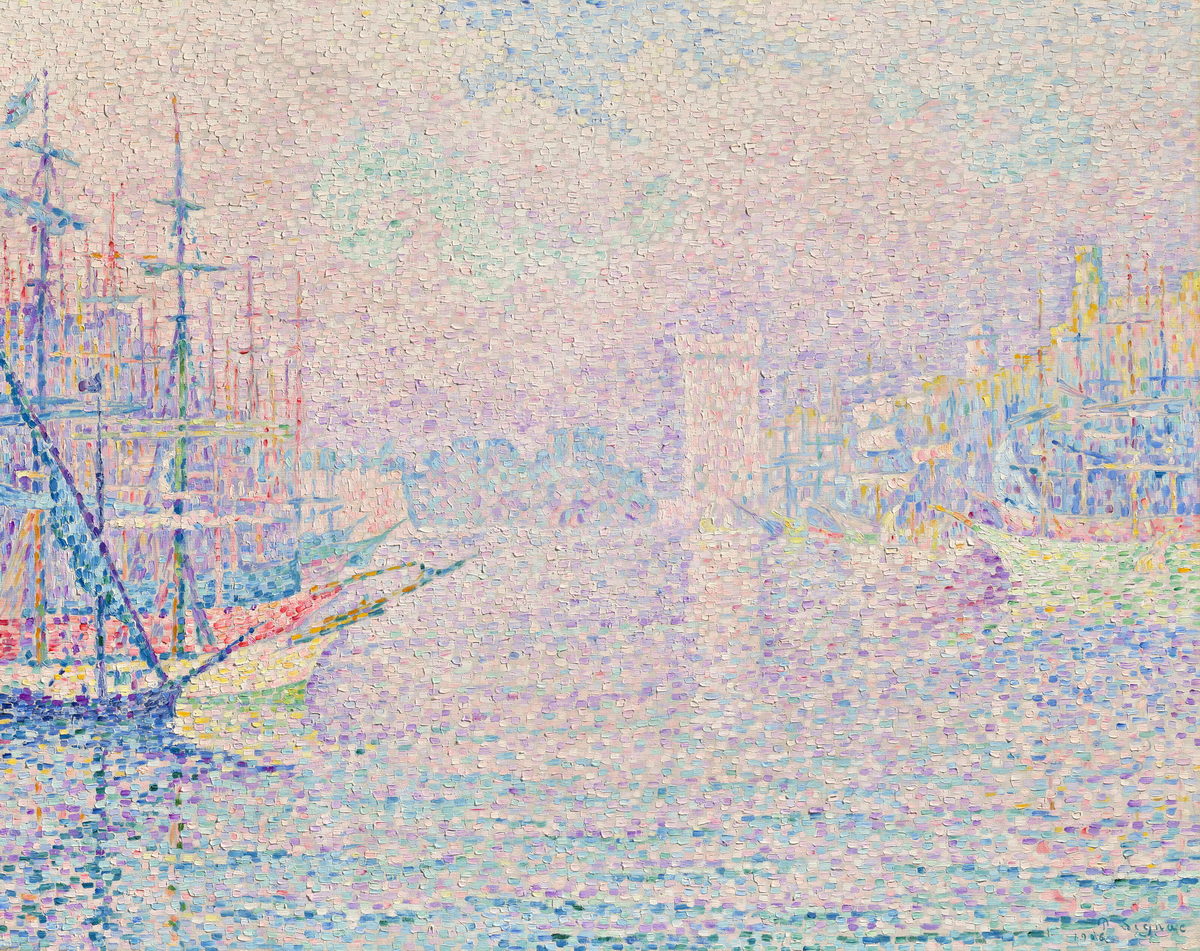 Reproduction of Marseille - The Old Port by Signac, a luminous and Pointillist seascape.