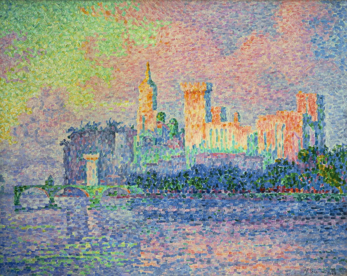 Reproduction of The Papal Palace in Avignon by Signac, a luminous and colorful view.