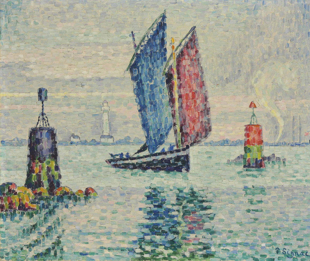 Reproduction of The Sardine Boat - Locmalo by Signac, a colorful Breton seascape.