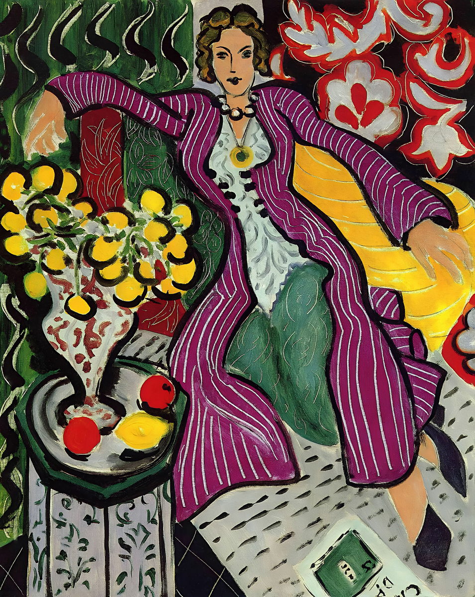Magnificent reproduction of Woman in a Purple Coat by Matisse, an explosion of decorative colors.