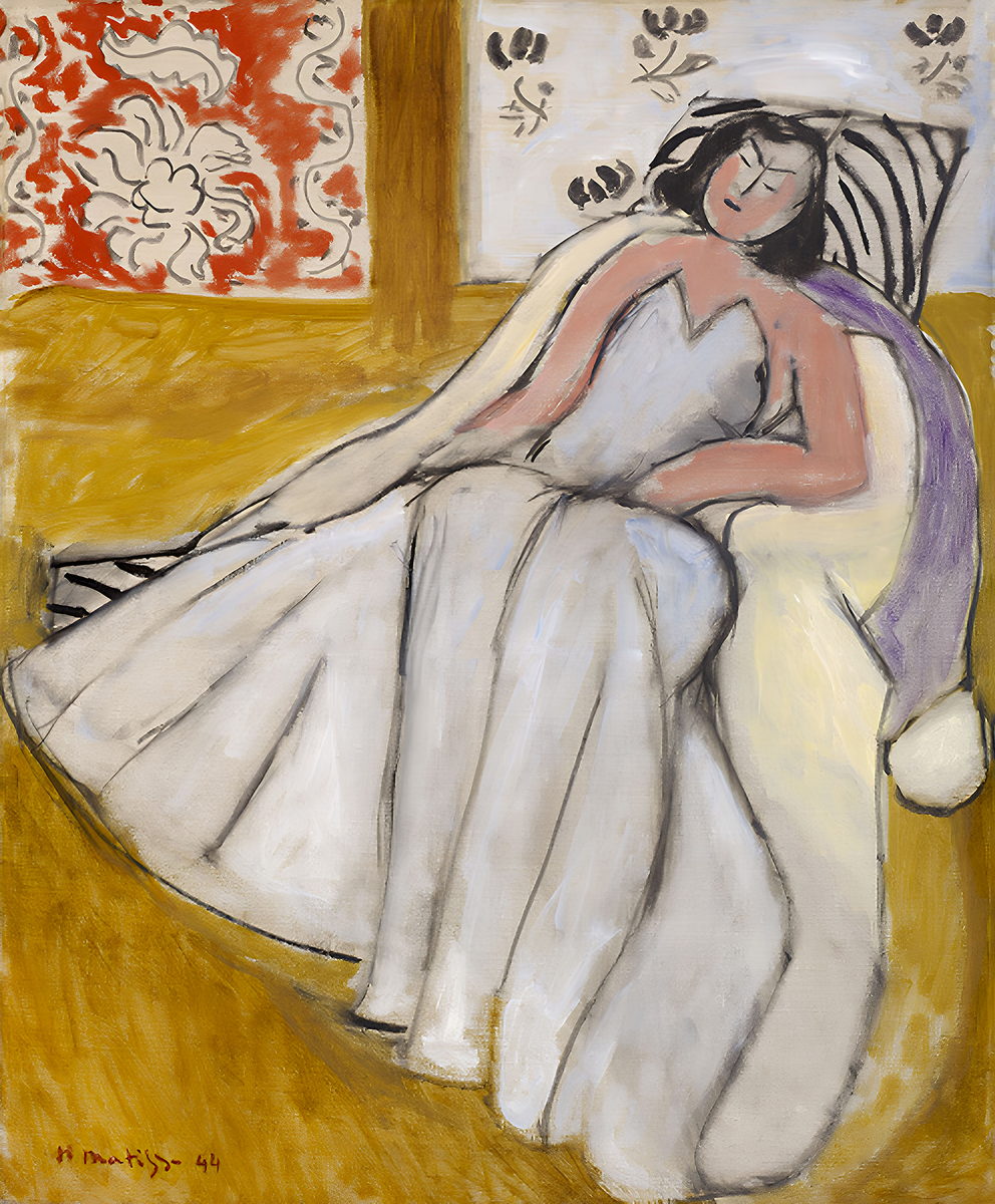 Reproduction of Young Woman in a White Pelisse by Matisse, a soft and restful work.