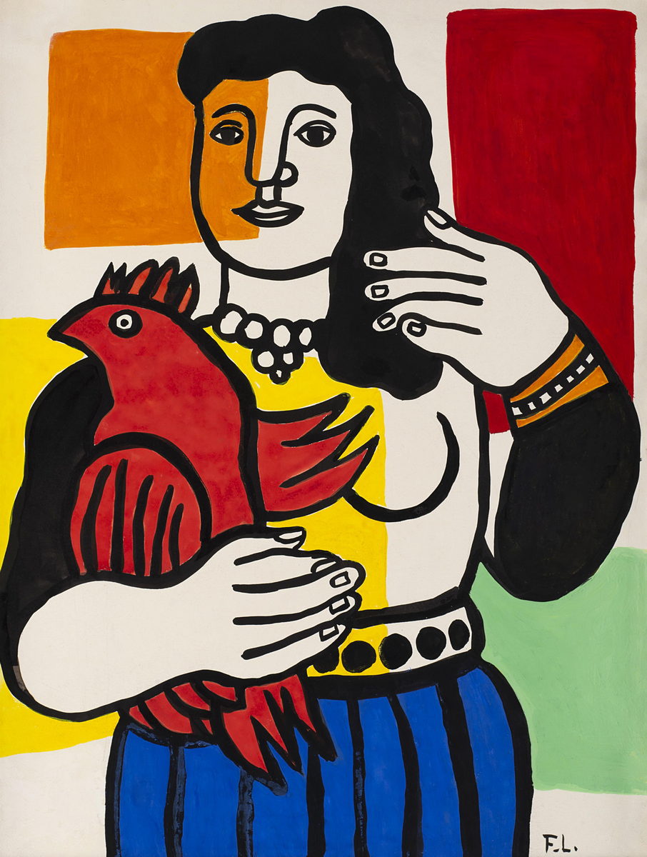 Reproduction de “Femme au Perroquet” (1951) de Fernand Léger. Un portrait moderne et graphique aux lignes noires et couleurs pures.