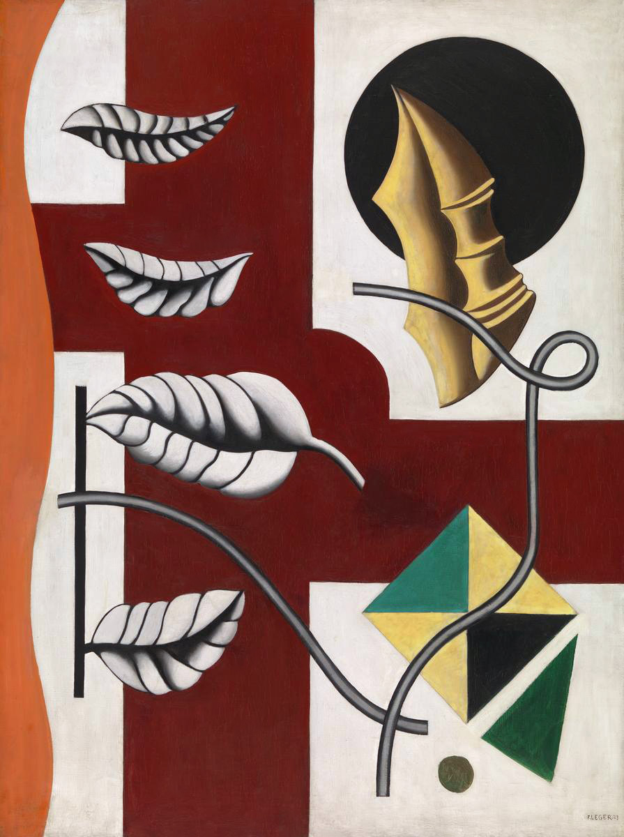 Reproduction de “Feuilles et Coquillage” (1927) de Fernand Léger. Une nature morte puriste emblématique, équilibrant formes organiques et géométrie.