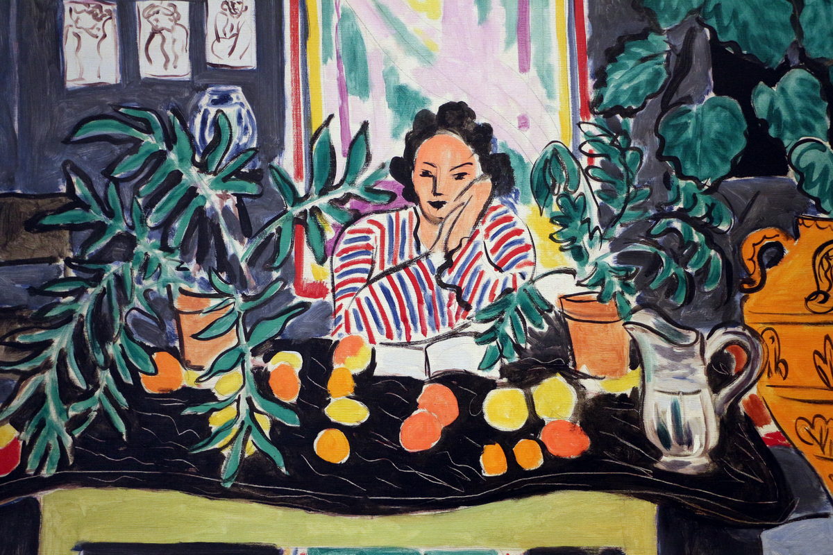 Magnifique reproduction de l’Intérieur au vase étrusque de Matisse, une œuvre riche et décorative.
