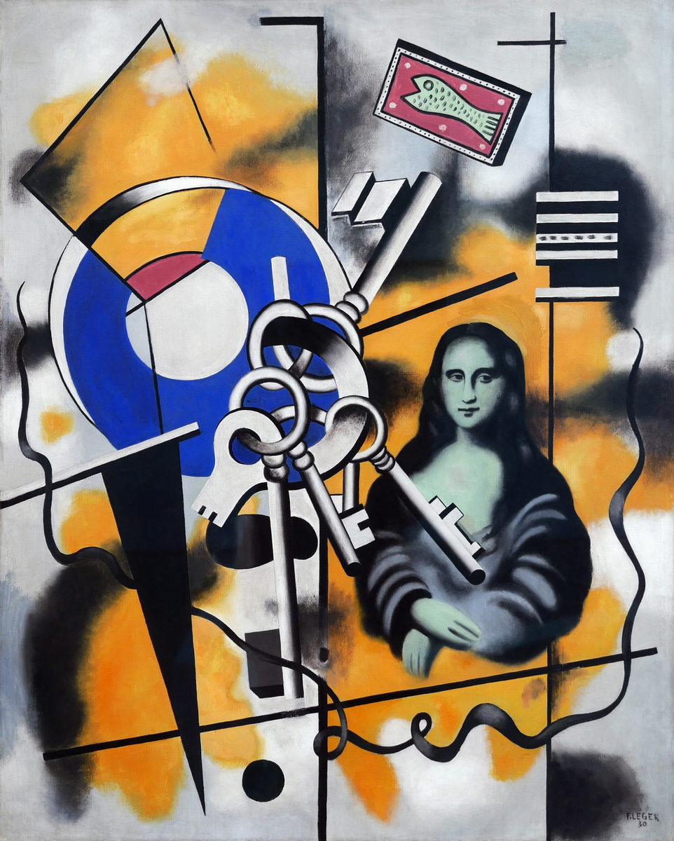Reproduction de “La Joconde aux clés” (1930) par Fernand Léger. Une peinture cubiste célèbre juxtaposant Mona Lisa et des objets modernes.