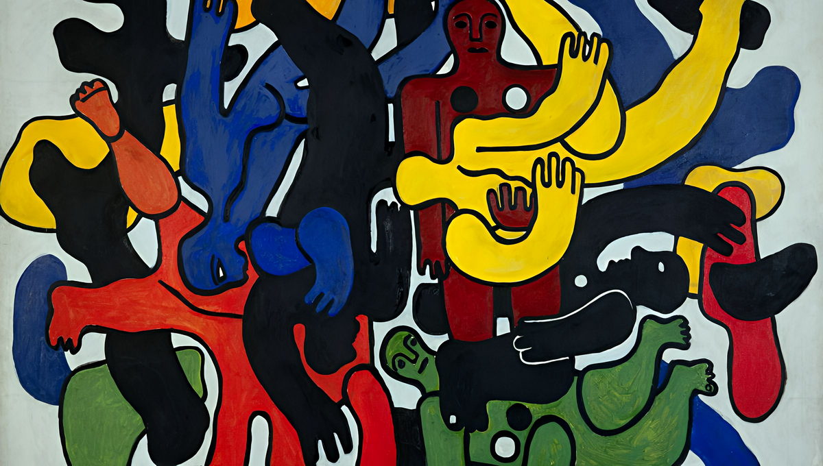 Reproduction de “Les Grands Plongeurs Noirs” (1944) de Fernand Léger. Une œuvre biomorphique et colorée de sa série sur les plongeurs.