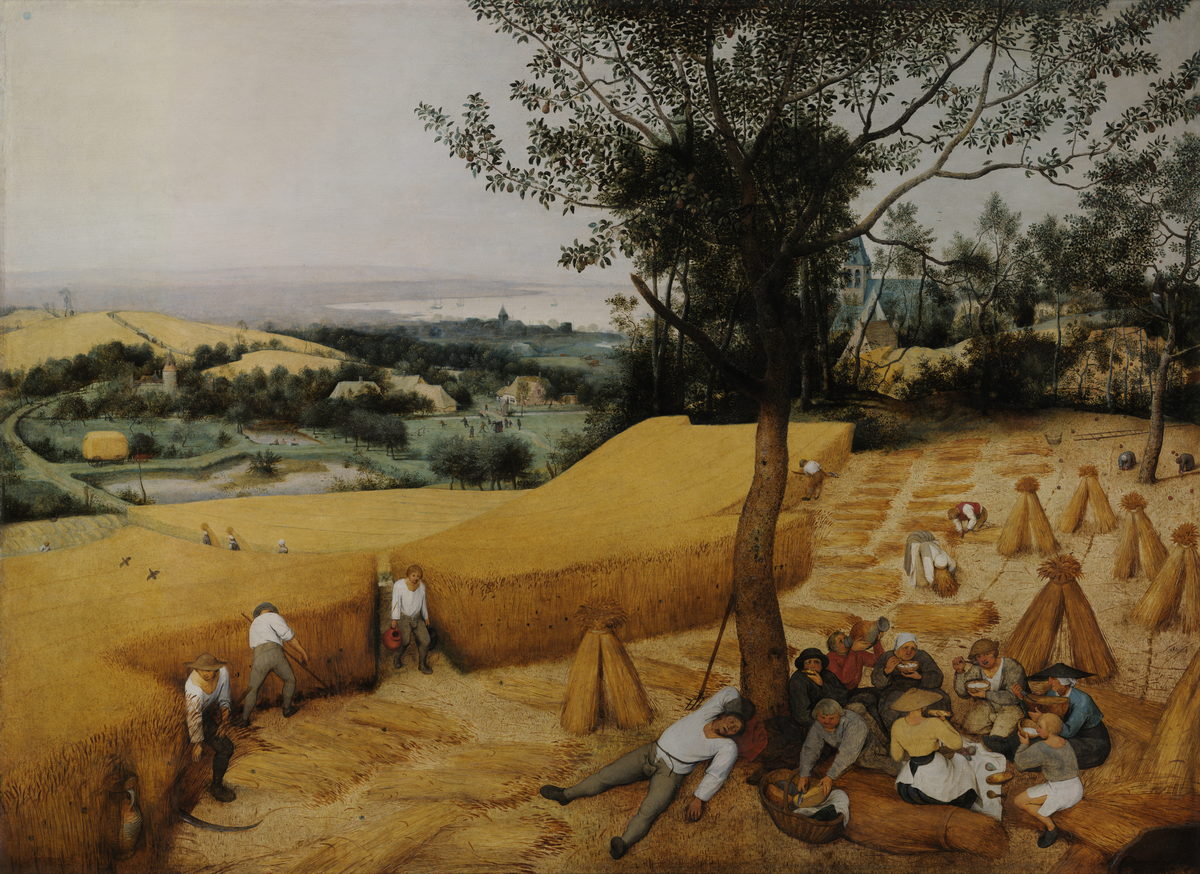 Reproduction de la célèbre peinture “Les Moissonneurs” de Bruegel l’Ancien. Une scène rurale flamande qui capture la chaleur et la beauté de la fin de l’été.