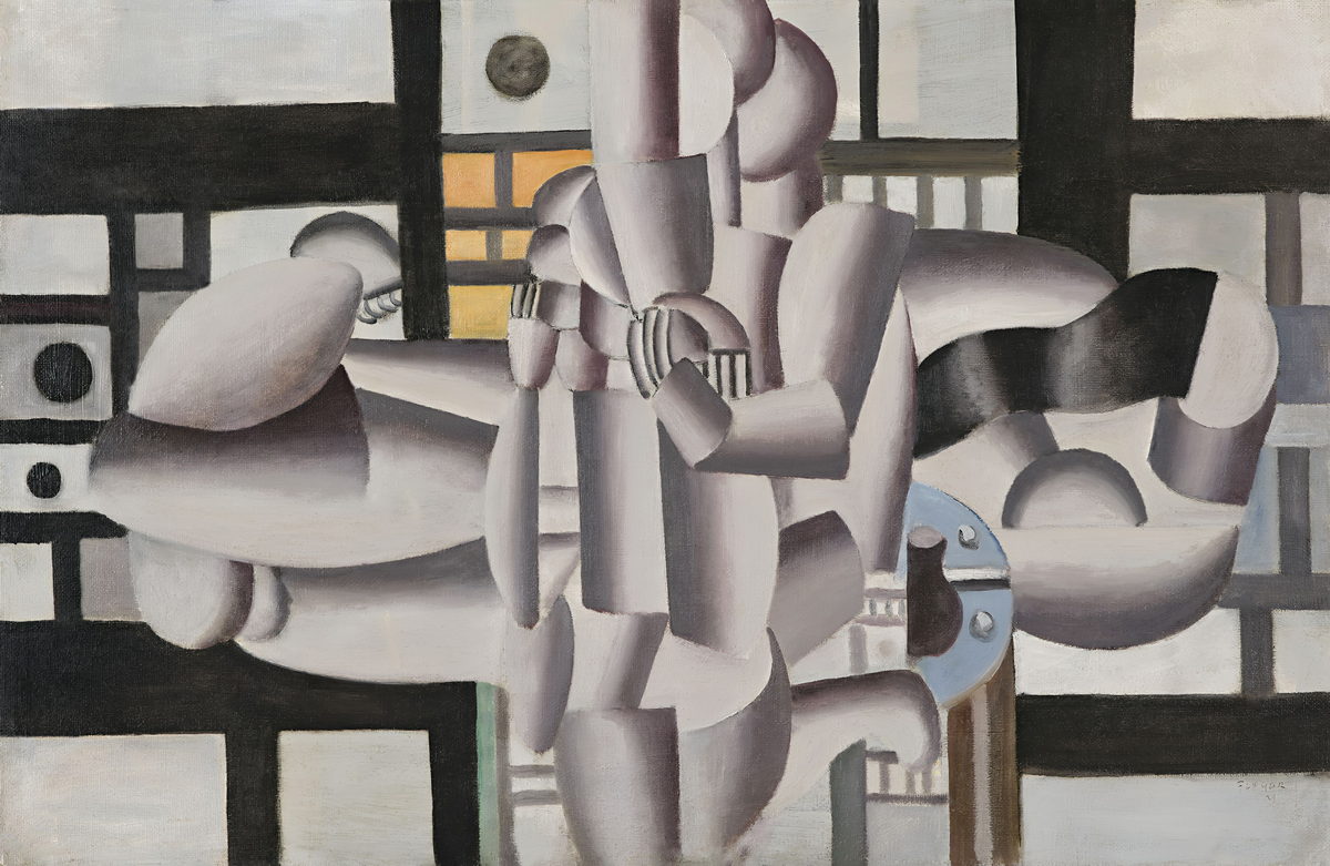 Reproduction de “Les Trois Femmes et la Nature Morte” (1920) de Fernand Léger. Une œuvre tubiste majeure aux figures féminines robotiques.