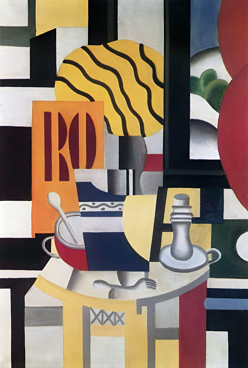 Reproduction de “Nature morte avec un chandelier” (1922) de Fernand Léger. Une composition cubiste (Puriste) géométrique et ordonnée.