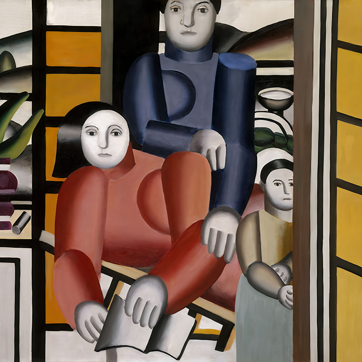 Reproduction (détail carré) de “Trois Femmes près d’un Jardin” (1922) de Fernand Léger. Un portrait de groupe cubiste (tubisme).