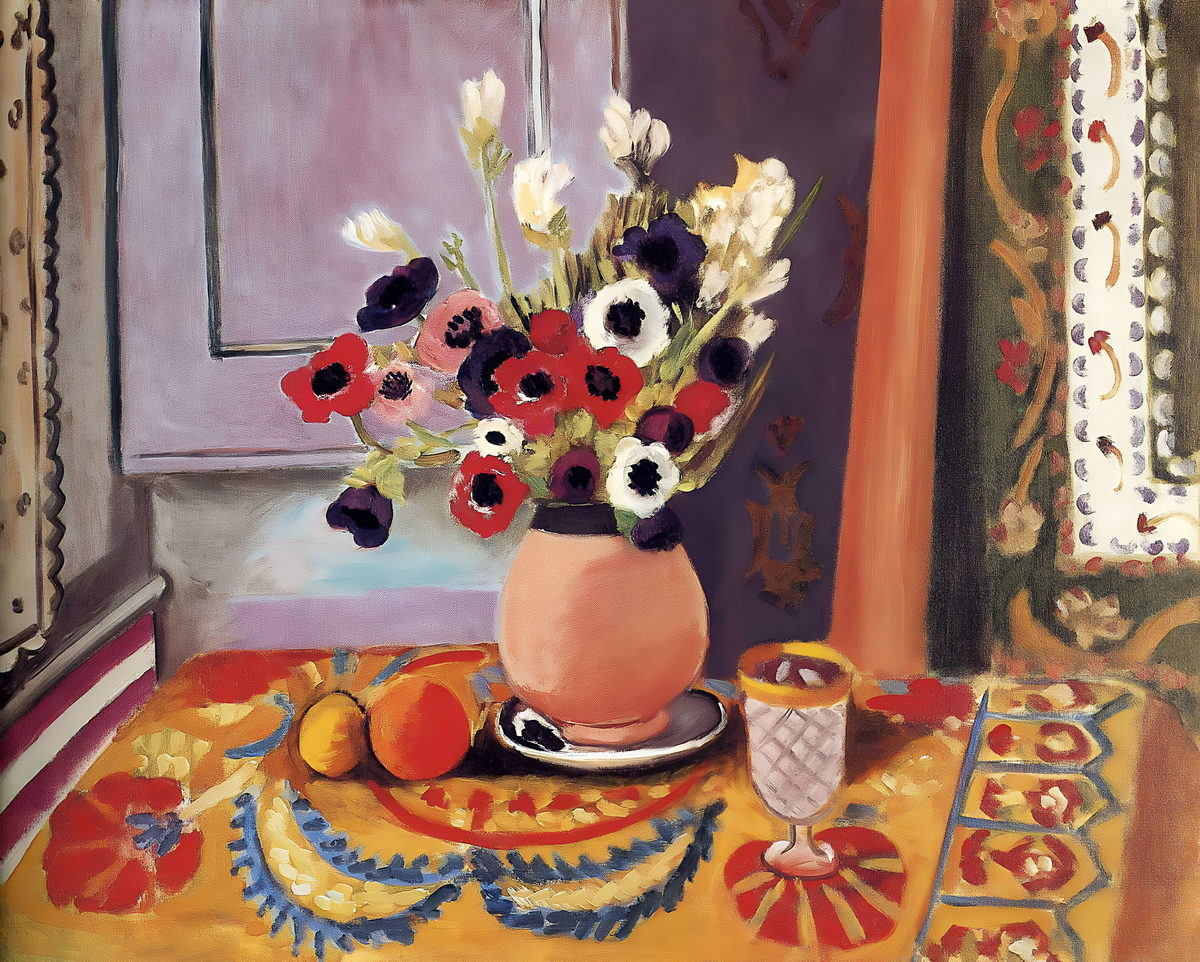 Commandez le Vase d’anémones de Matisse, une explosion florale de couleurs chaudes.